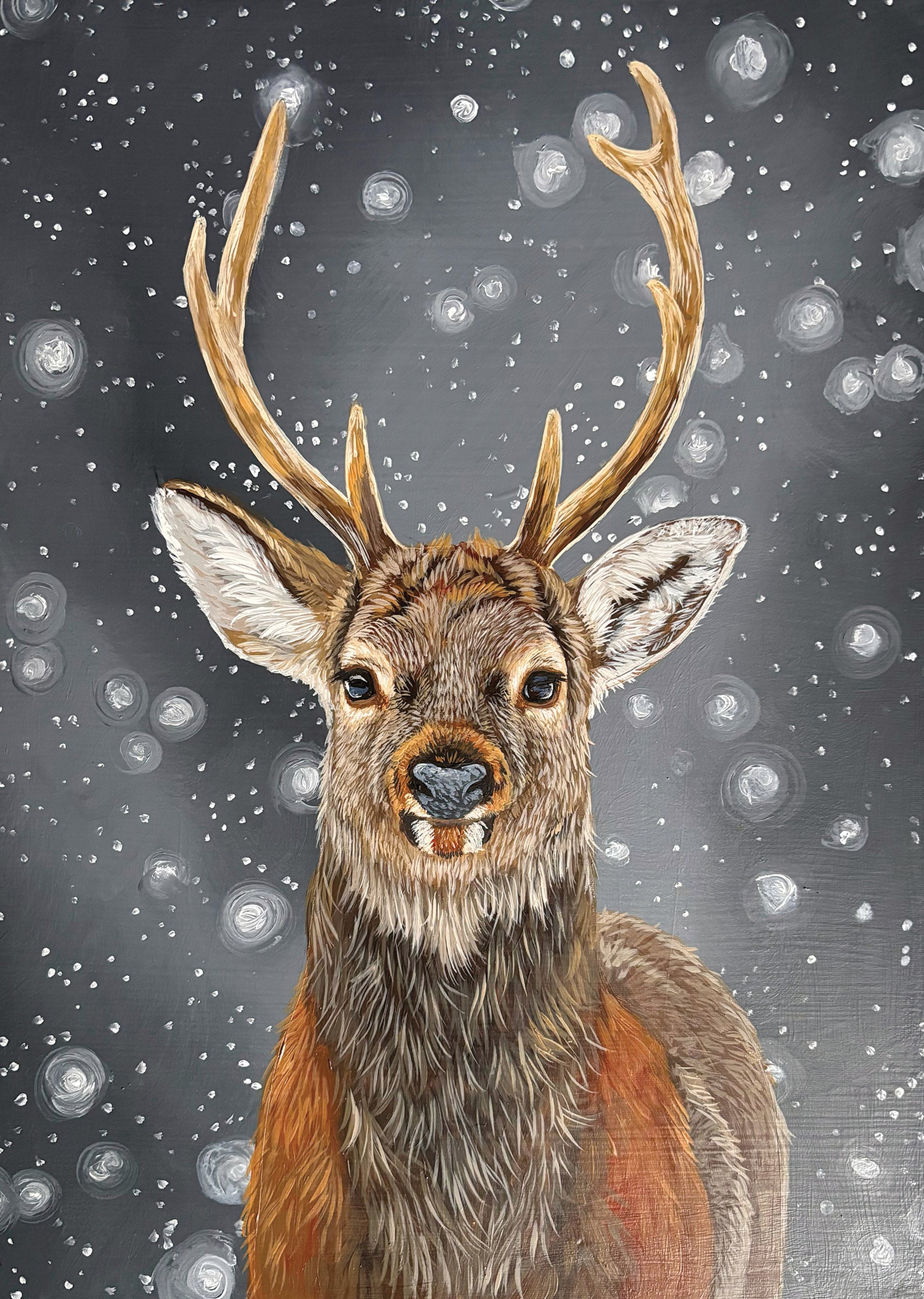 Original 'Winter Stag' painting, rendered in acrylic paint on an A3 stretched canvas.